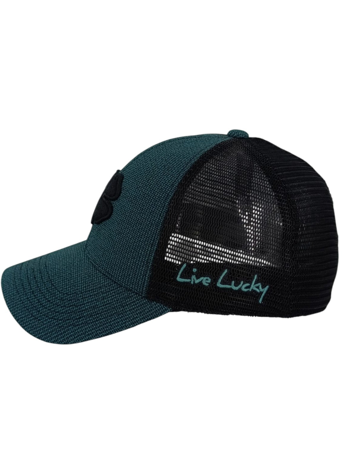 Mantente fresco y elegante con la gorra Midway 1. Con una moderna gorra verde azulado y parte trasera de malla negra transpirable, junto con un parche de trébol negro, esta gorra es perfecta para cualquier ocasión informal. La diadema con ajuste viscoelástico garantiza un ajuste cómodo y seguro, lo que la convierte en una prenda imprescindible en tu armario.