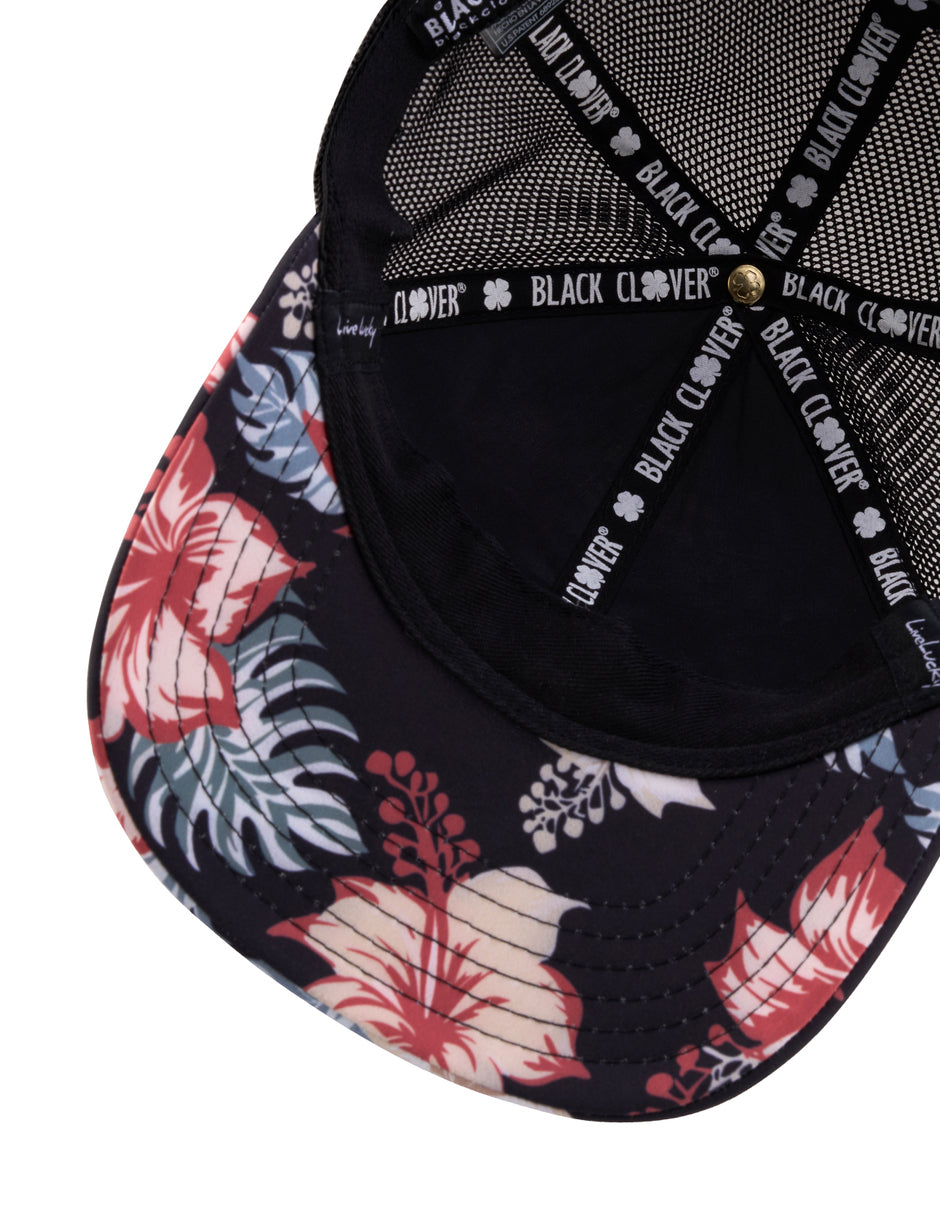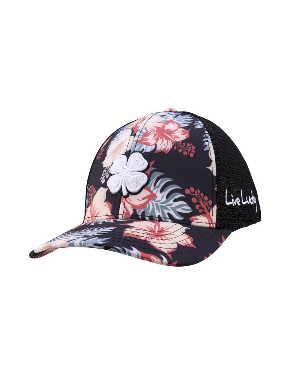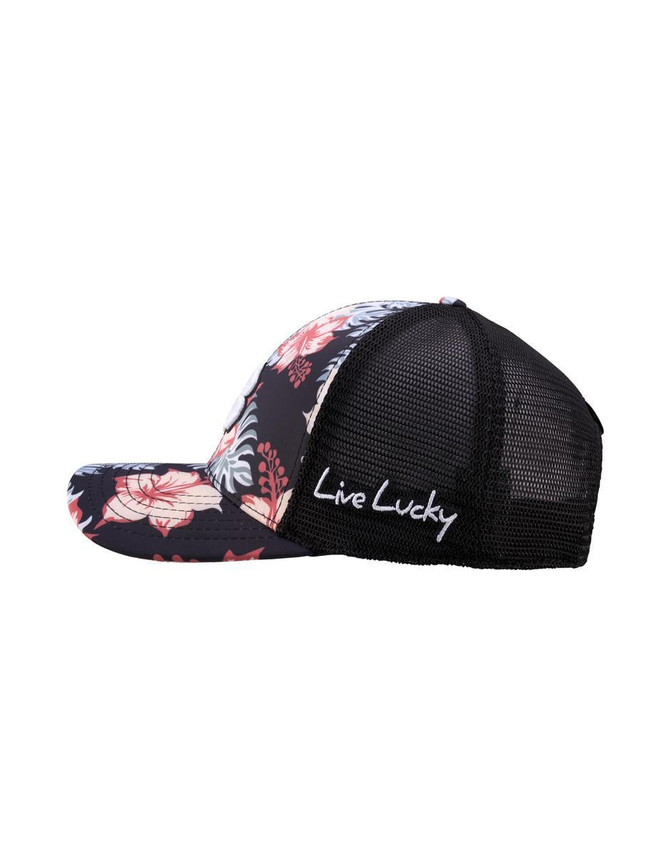 Disfruta de unas minivacaciones con nuestra gorra Island Luck 37, un elegante accesorio playero para los días de calor. Confeccionada con un estampado tropical en negro y rosa con malla negra, luce un trébol blanco en 3D. La parte trasera ajustable garantiza un ajuste perfecto, y cada gorra es única y versátil, ideal para el verano.