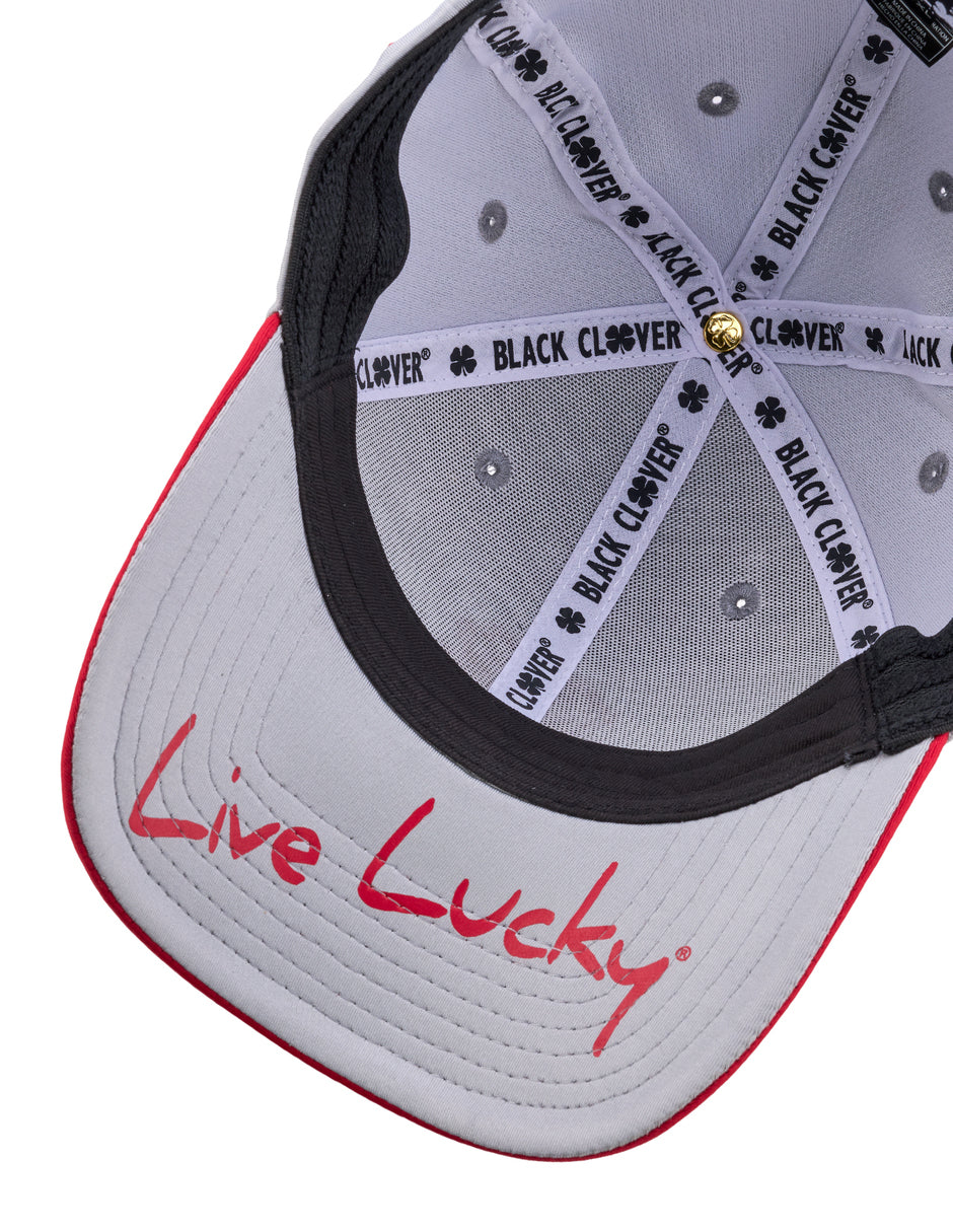 • Gorra roja con gris versátil con forro de banda para el sudor