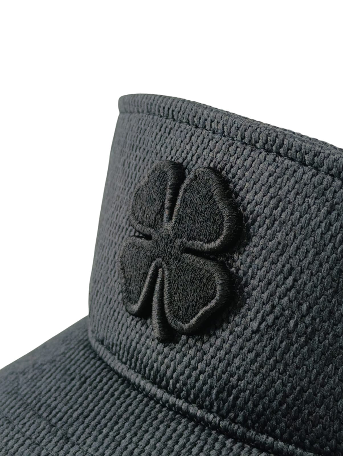 • Visera negra versátil con el ícono del trébol negro en 3D