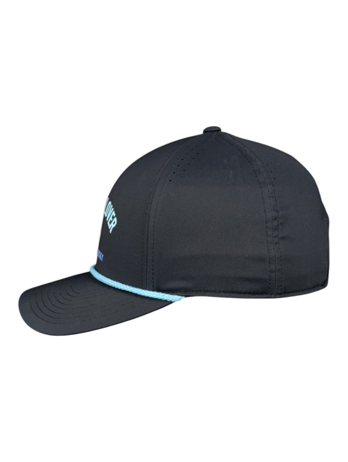 La gorra Laguna 2 luce una elegante corona negra y un llamativo logo HD en azul cielo degradado con un cordón azul. Con un cierre ajustable a presión para un ajuste perfecto, esta gorra combina un estilo atemporal con un toque moderno y fresco. ¡Perfecta para cualquier ocasión!