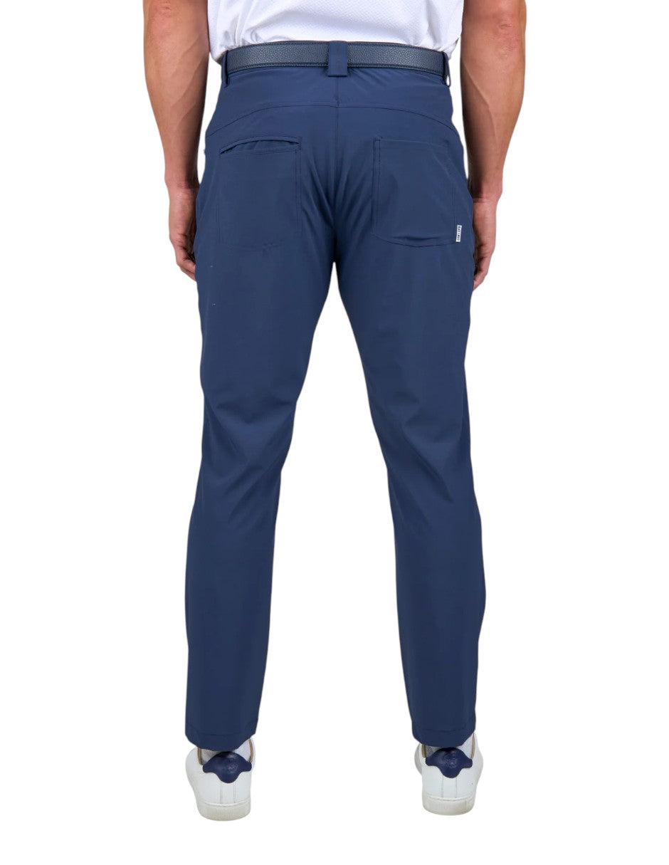 Nuestros pantalones Jack Slack Azul están confeccionados en sarga elástica de cinco bolsillos, que ofrece una transpirabilidad inigualable, tecnología antiarrugas, bajo encogimiento y elasticidad en cuatro direcciones para una comodidad máxima. Estos versátiles pantalones se adaptan a la perfección a la oficina, al campo de golf o a salidas informales, lo que los hace perfectos para cualquier ocasión.