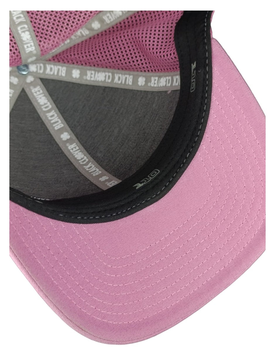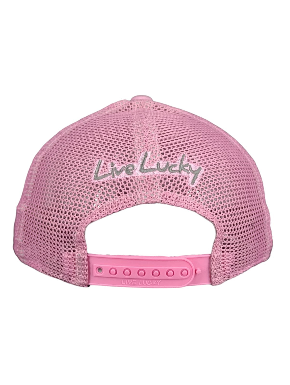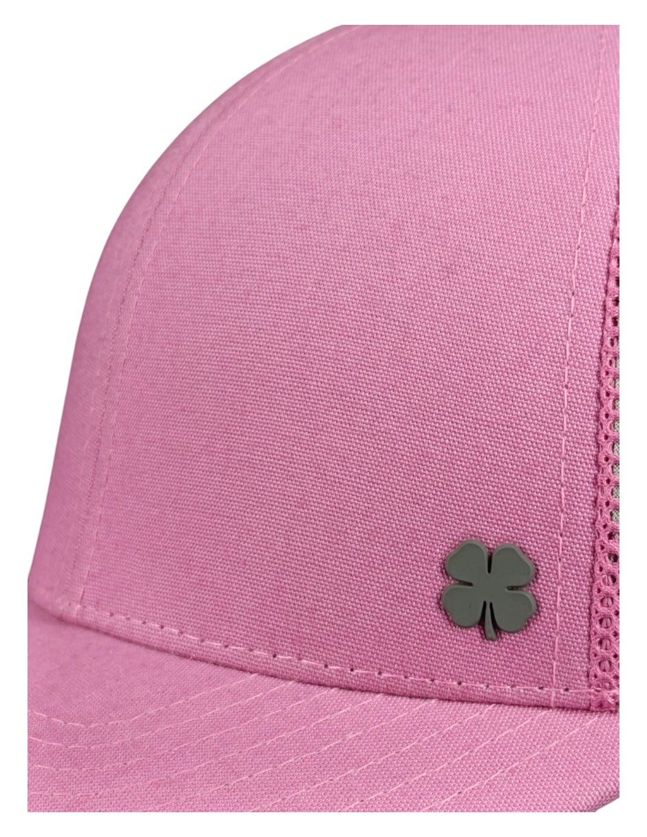 Presentamos Her Luck 1, una elegante gorra snapback para mujer con un ajuste femenino. El sombrero presenta un diseño de malla con un lado de trébol plateado y una visera rosa. Confeccionada con materiales y recursos sostenibles, esta gorra ajustable es la manera perfecta de agregar un estilo único a cualquier atuendo.