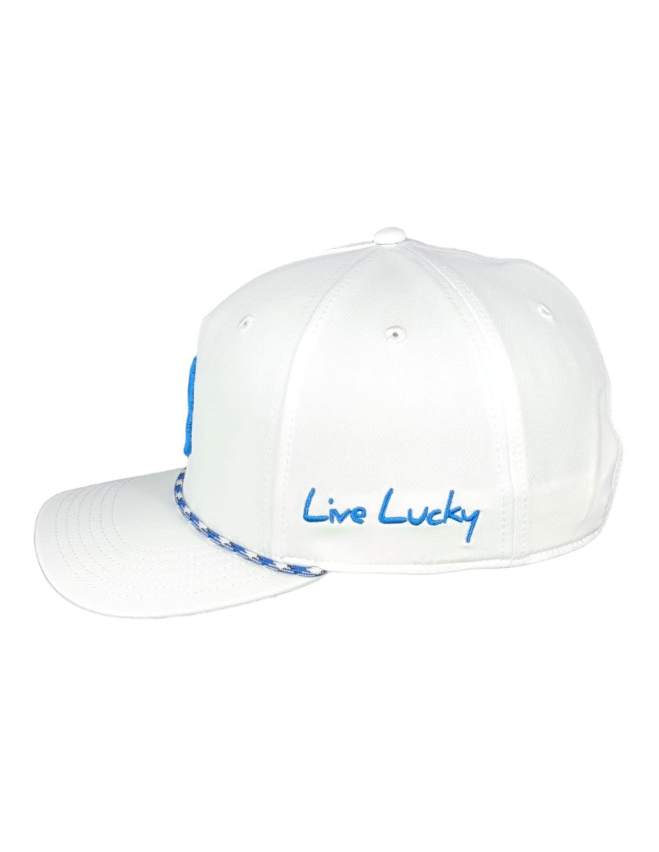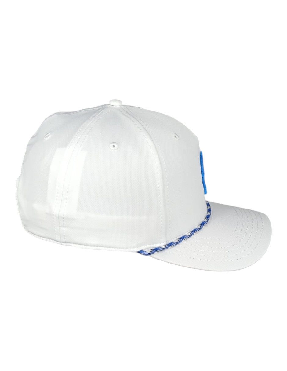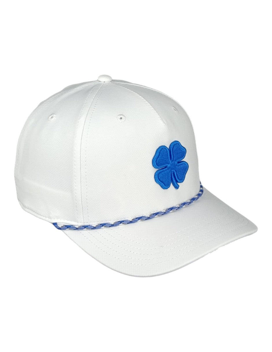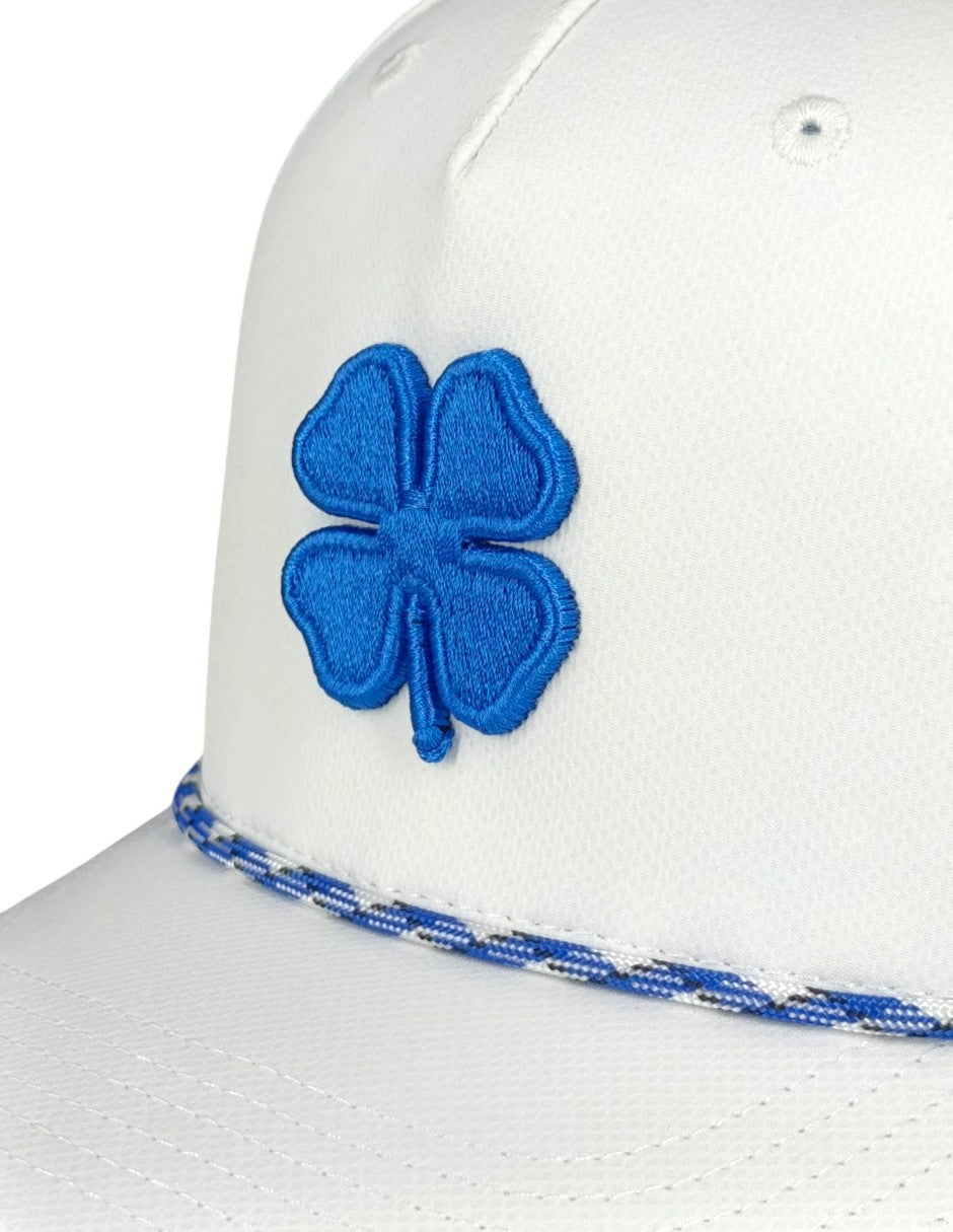 La gorra Classic Rope 1 presenta una corona blanca impecable con malla blanca transpirable, un llamativo trébol azul rey bordado en 3D y una cuerda con detalles en blanco y azul rey. Con un cierre ajustable a presión para un ajuste perfecto, esta gorra combina un estilo atemporal con un toque moderno y fresco. ¡Perfecta para cualquier ocasión!