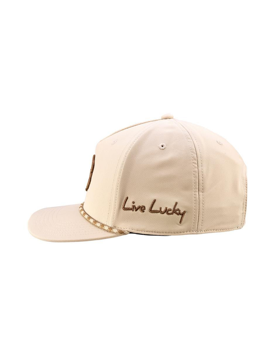 La gorra Classic Rope 1 presenta una corona blanca impecable con mallA beige  transpirable, un llamativo trébol azul rey bordado en 3D y una cuerda con detalles e beige. Con un cierre ajustable a presión para un ajuste perfecto, esta gorra combina un estilo atemporal con un toque moderno y fresco. ¡Perfecta para cualquier ocasión!