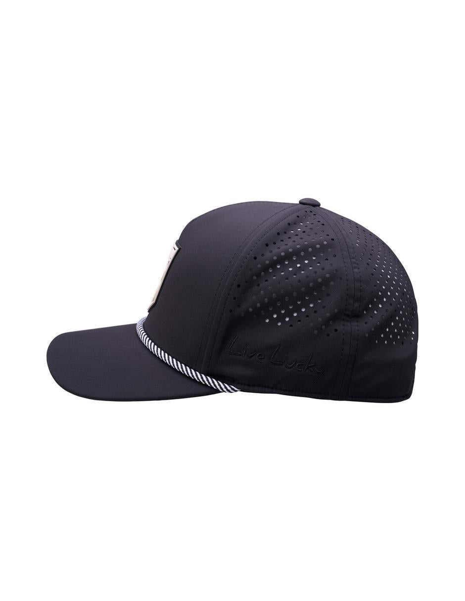 La Duke 3 es una elegante gorra color negro lisa con cierre a presión ajustable y perforaciones a láser en la parte trasera para una transpirabilidad máxima. Con un parche negro con blanco en 3D en la parte delantera, es perfecta para el campo de golf o como un complemento versátil para tus atuendos diarios, combinando estilo y comodidad a la perfección.
