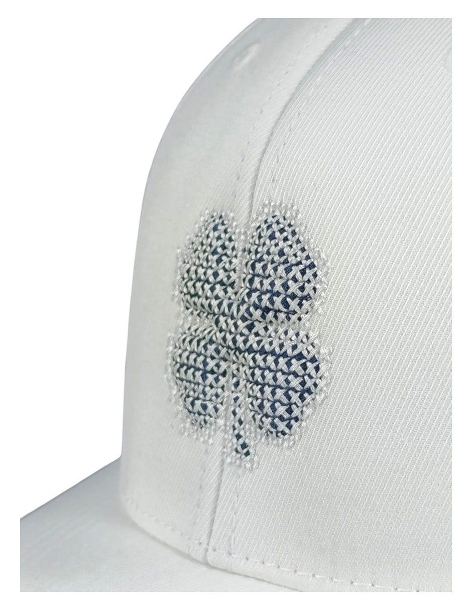 Nuestra gorra Inside Line es una elegante gorra color blanco con cierre a presión. Con un trébol con relieve en color azul marino con blanco, este elegante diseño le aporta una sutil sofisticación. Perfecta para cualquier estilo de vida, es tu gorra ideal para salir por la noche o para salidas informales.