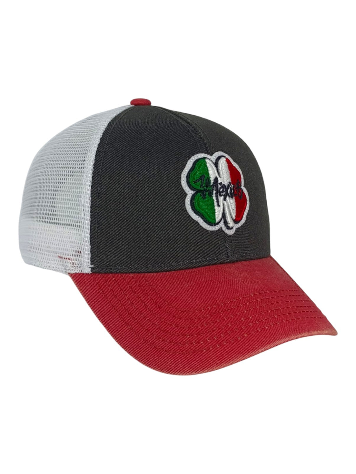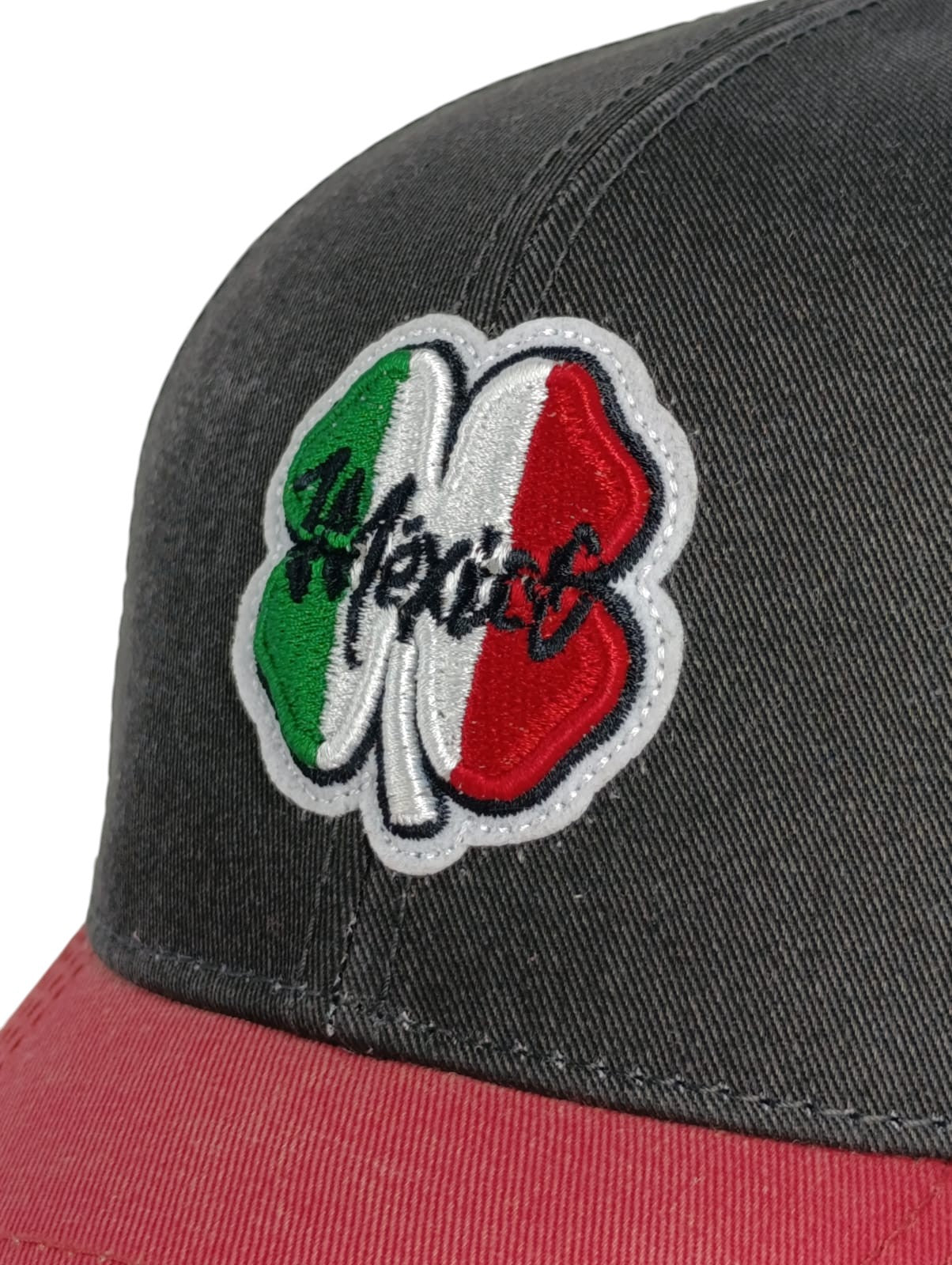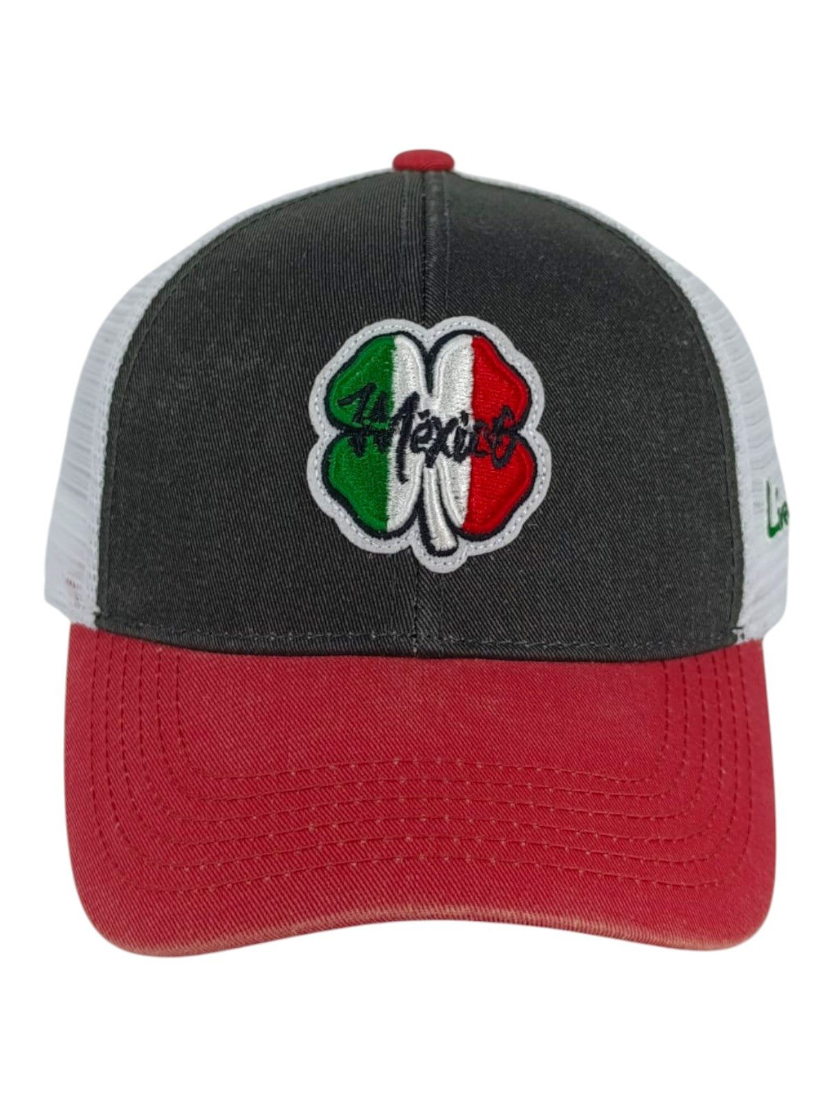 Recupera un ambiente retro con nuestros sombreros Mexico Washed. Confeccionada con algodón lavado vintage de primera calidad, esta gorra negra presenta un ala roja y una malla blanca para un ajuste fresco y transpirable. La parte delantera de la gorra cuenta con nuestro icónico trébol en homenaje a la bandera mexicana, y la gorra ajustable garantiza un ajuste perfecto en todo momento. Este elegante sombrero es una manera perfecta de mostrar patriotismo y un complemento ideal para cualquier ropa informal.