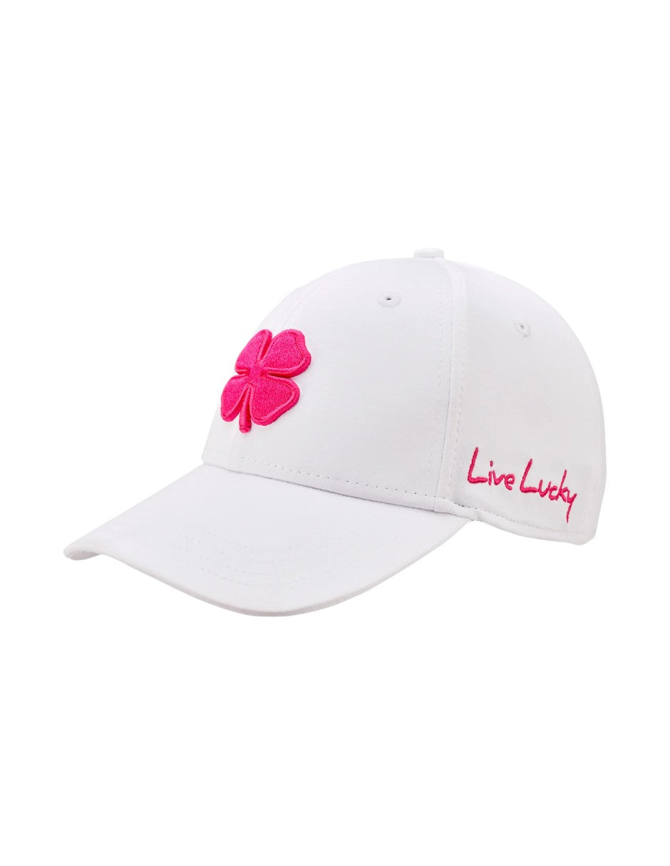 La Premium Clover 159 es nuestra icónica gorra blanca con ajuste, conocida por su estilo atemporal y su comodidad inmejorable. Con tela que absorbe la humedad para mantenerte seco, una diadema A-Flex para un ajuste perfecto y nuestro exclusivo diseño de trébol en rosa oscuro, esta gorra premium está diseñada para ofrecer rendimiento, versatilidad y calidad duradera.
