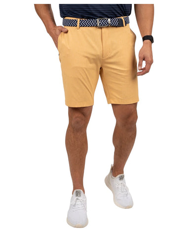 Estos shorts Prime de sarga elástica texturizada en amarillo latte combinan estilo y funcionalidad, con cintura elástica, tejido que absorbe la humedad y transpirabilidad para una comodidad duradera. Con bajo encogimiento y un diseño elegante, estos shorts de 23 cm son perfectos para el campo de golf, la sala de juntas o cualquier ocasión que requiera sofisticación versátil.