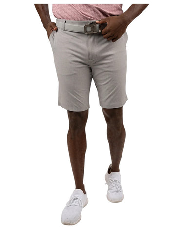 Estos shorts Prime de sarga elástica texturizada en gris claro combinan estilo y funcionalidad, con cintura elástica, tejido que absorbe la humedad y transpirabilidad para una comodidad duradera. Con bajo encogimiento y un diseño elegante, estos shorts de 23 cm son perfectos para el campo de golf, la sala de juntas o cualquier ocasión que requiera sofisticación versátil.