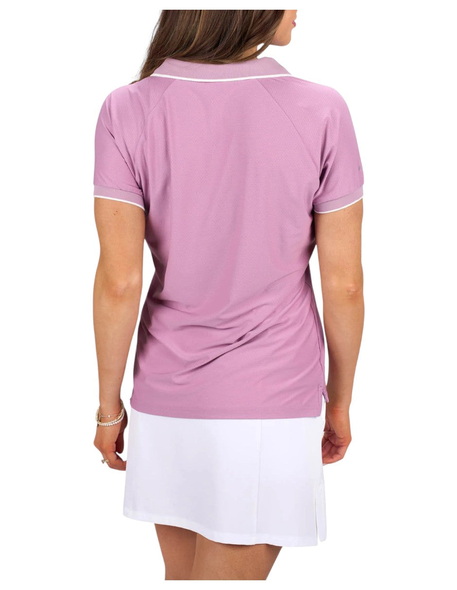 Presentamos el polo Aria, donde un diseño elegante se combina con la máxima comodidad. Este polo para mujer luce un negro liso con ribetes blancos en el cuello y los puños para un look sofisticado. Con un elegante cuello en V abierto y confeccionado en malla elástica transpirable de alto rendimiento, es supersuave y perfecto para cualquier ocasión.