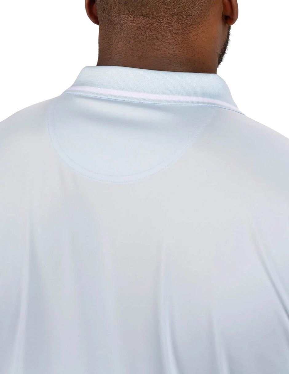 Nuestro polo Lincoln azul hielo ofrece un estilo clásico y una comodidad superior. Este polo liso supersuave presenta cuello y puños de punto acanalado que no se enroscan. Fabricado con una mezcla de poliéster y elastano transpirable y resistente a la humedad, incluye tecnología de retención de forma para una apariencia elegante que perdura tanto en el campo como en la sala de juntas.