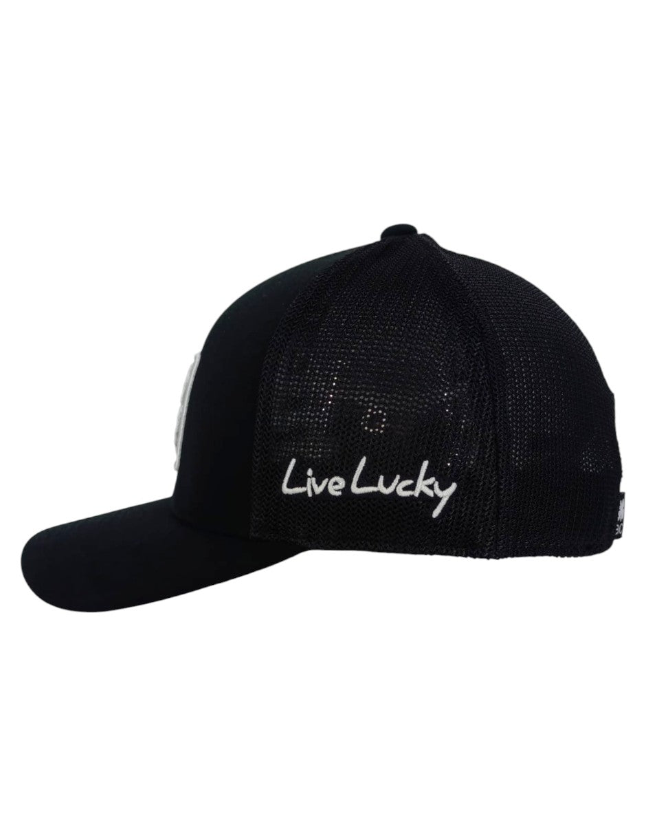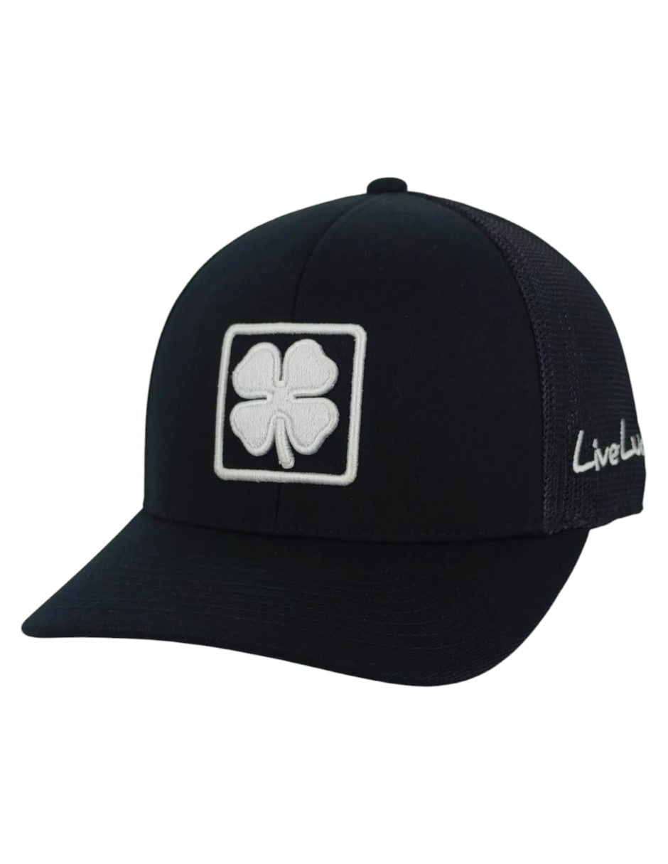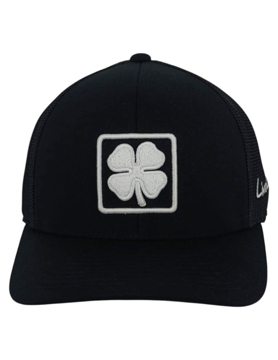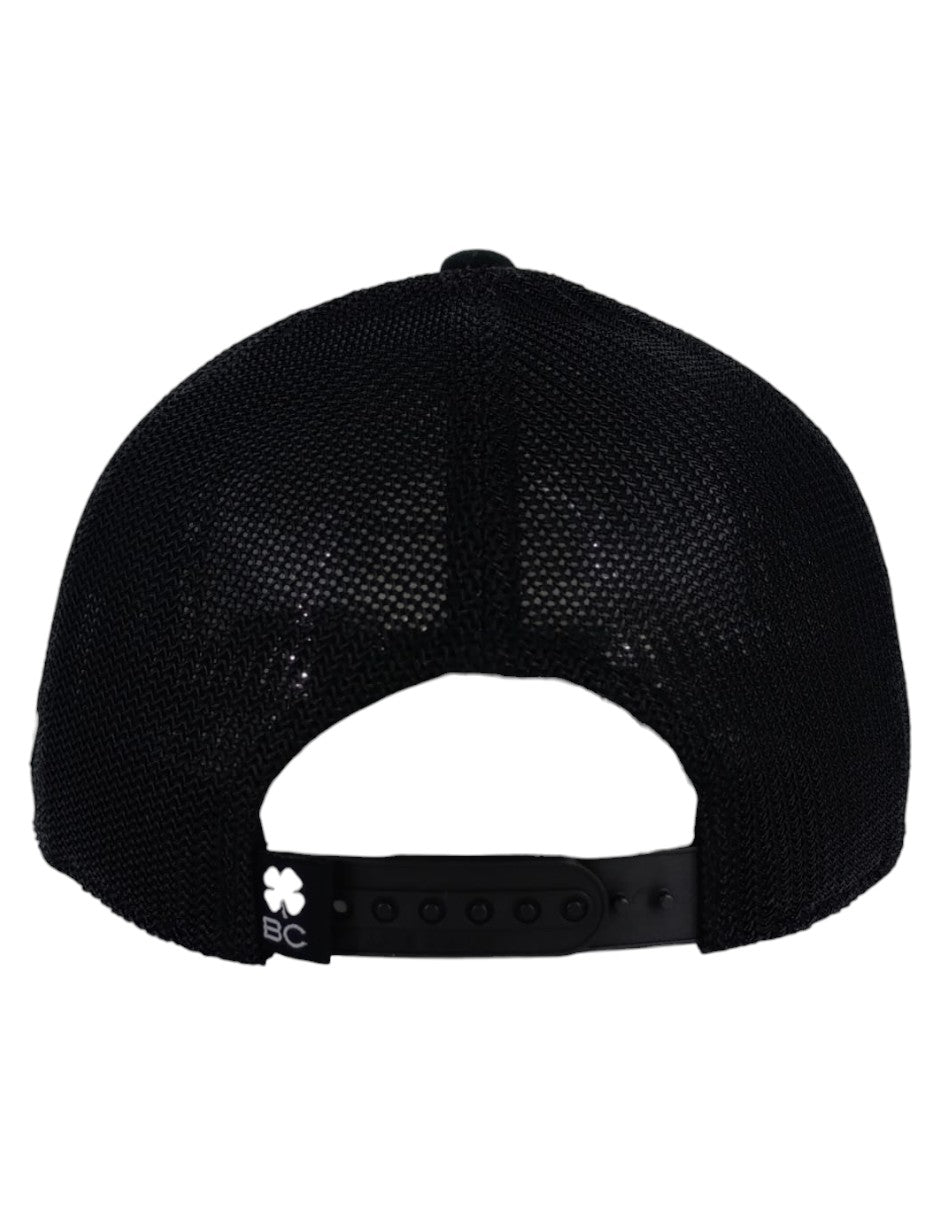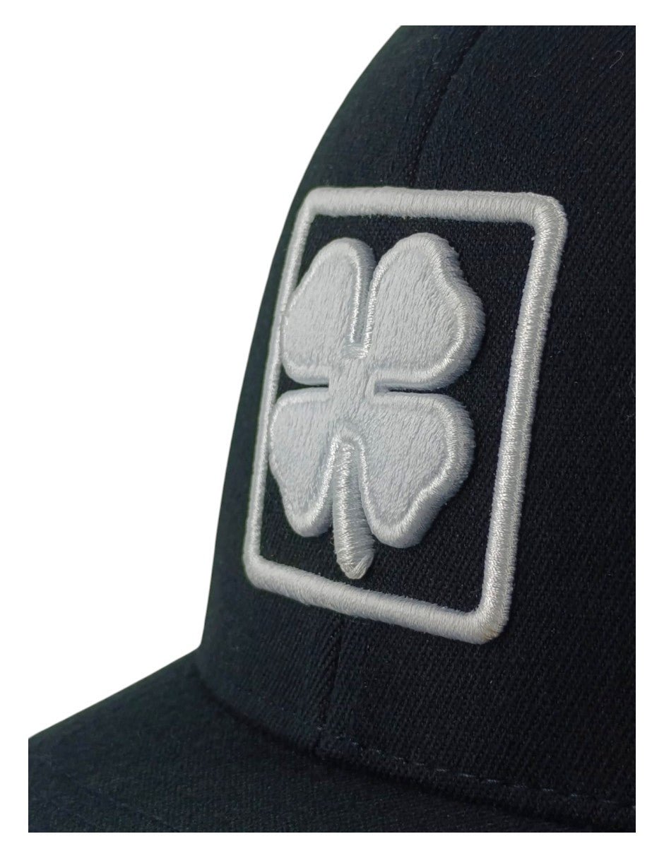 Un look llamativo comienza aquí con nuestro gorro negro Hawk 2. Esta gorra ajustable presenta un color negro sólido, combinado con una malla negra transpirable y adornado con un parche de trébol 3D en blanco rodeado por un cuadrado. Diseñado para un ajuste fresco y cómodo, este llamativo sombrero seguramente llamará la atención.