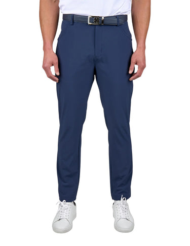 Nuestros pantalones Jack Slack Azul están confeccionados en sarga elástica de cinco bolsillos, que ofrece una transpirabilidad inigualable, tecnología antiarrugas, bajo encogimiento y elasticidad en cuatro direcciones para una comodidad máxima. Estos versátiles pantalones se adaptan a la perfección a la oficina, al campo de golf o a salidas informales, lo que los hace perfectos para cualquier ocasión.