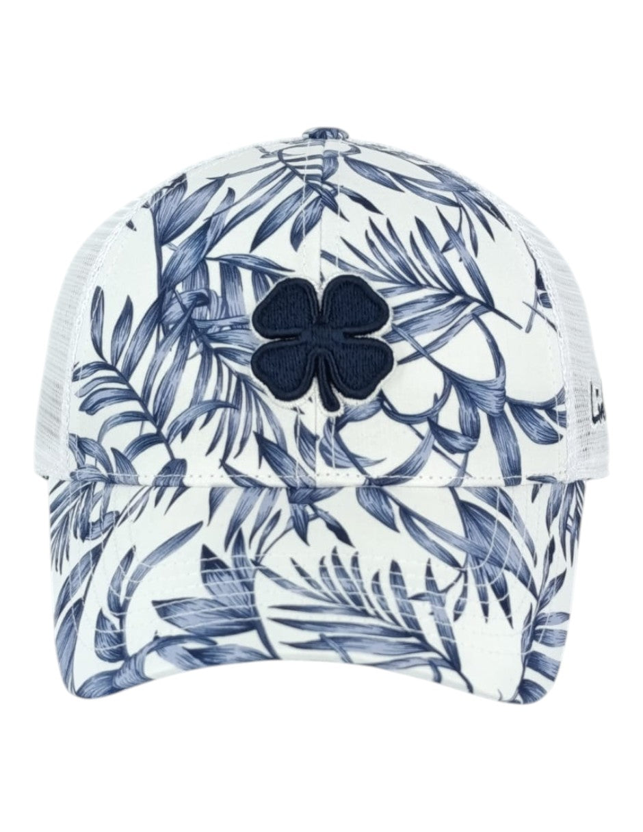 Disfruta de unas minivacaciones con nuestra gorra Island Luck 31, un elegante accesorio playero para los días de calor. Confeccionada con un estampado tropical en blanco, azul con malla color blanco, luce un trébol azul en 3D. La parte trasera ajustable garantiza un ajuste perfecto, y cada gorra es única y versátil, ideal para el verano.